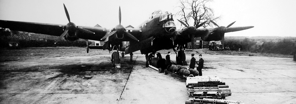 Top photo: Bombing up a 75(NZ) Squadron C Flight Lancaster. 4000 lb ‘cookie’ under the bomb bay, 500 pounders, and incendiaries (nearest).