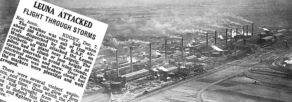 However this was the first time that the RAF had made such a major attack on an oil target so deep into Eastern Germany. Leuna, near the town of Merseburg, just west of Leipzig, was 250 miles from the German frontier and 500 miles from the bombers’ bases in England, near the extremities of their range.